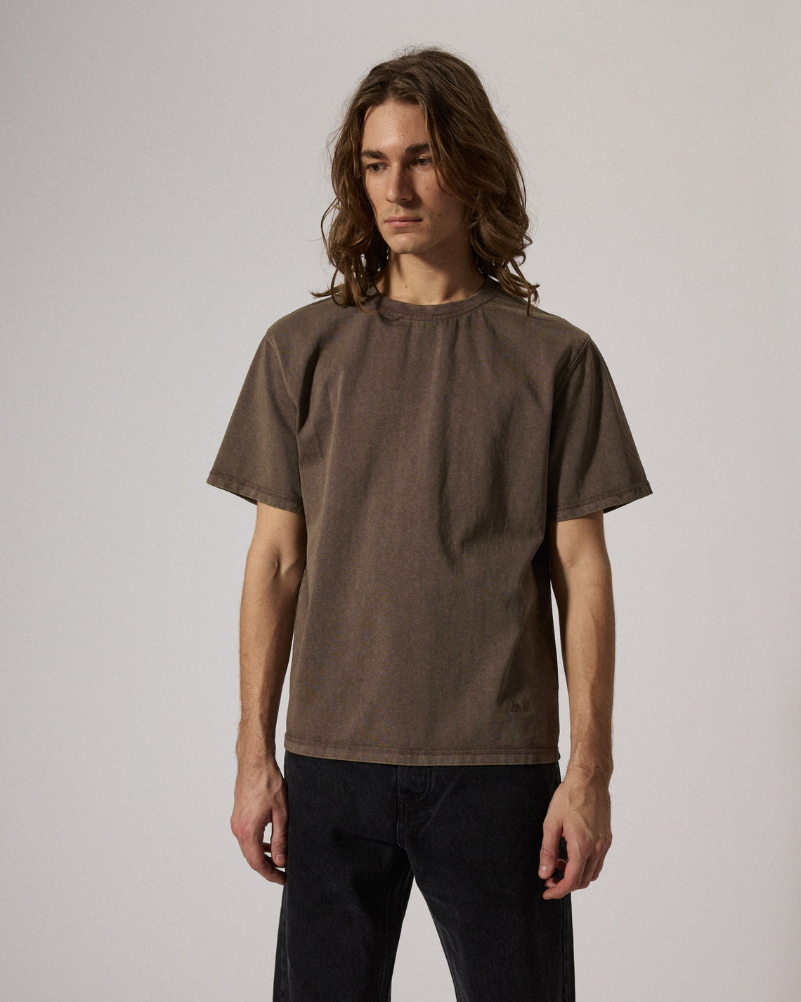 T-shirt in a classic round neckline with a ribbed collar. Regular fit with a slightly shorter length, crafted in a soft midweight jersey made from organic cotton and stonewashed for a vintage look. Small monogram embroidery at the left bottom hem.