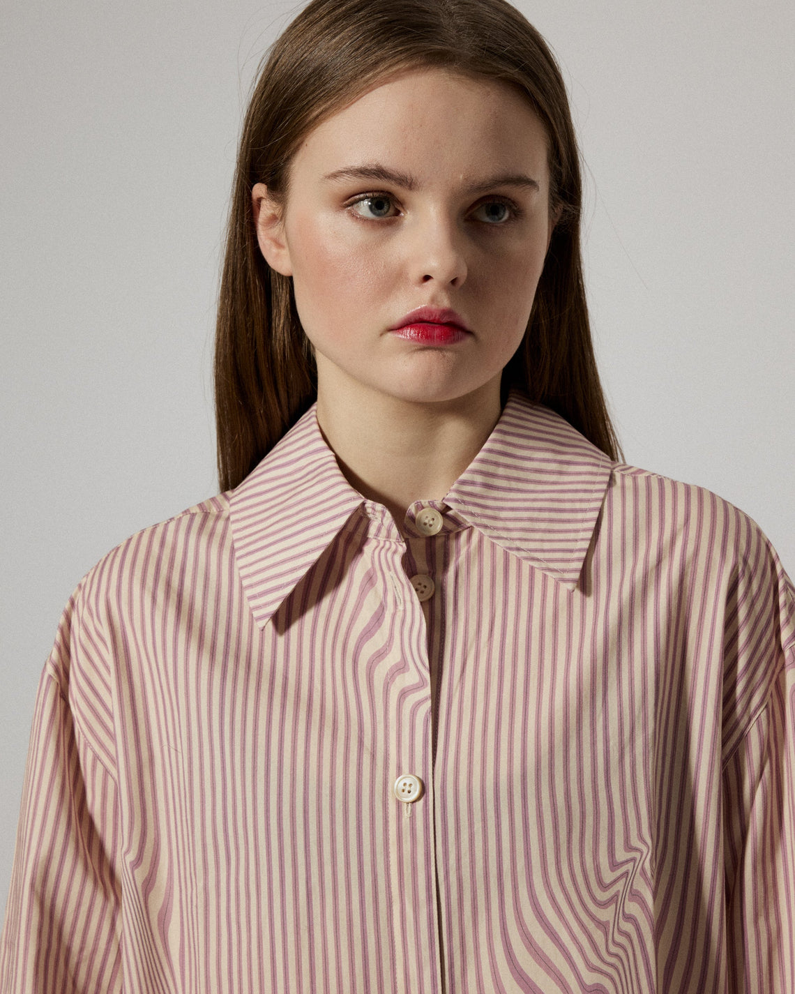 Stella is the classic shirt cut in a contemporary loose silhouette crafted from a smooth poplin cotton. Featured with sewn mother of pearl buttons at front and cuff, and with an added box pleat below back yoke for added volume. Slightly longer in the back than in the front for a flattering fit.