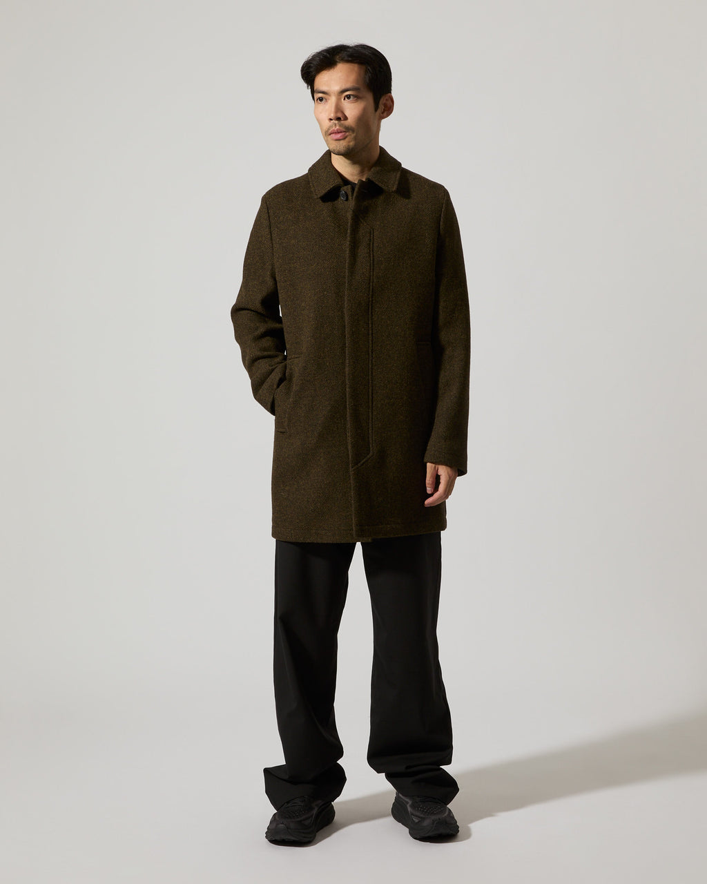 Crafted in a Shetland quality made from raw wool material which derives one hundred percent from European origin and is woven in a Portugese fabric mill, certified by Oeko-tex. T-Coat Wool is a car coat cut at mid-length with a classic silhouette and a regular collar. Featured with simple detailing which creates a clean and minimalistic look. Concealed buttons at front closure, except top button.