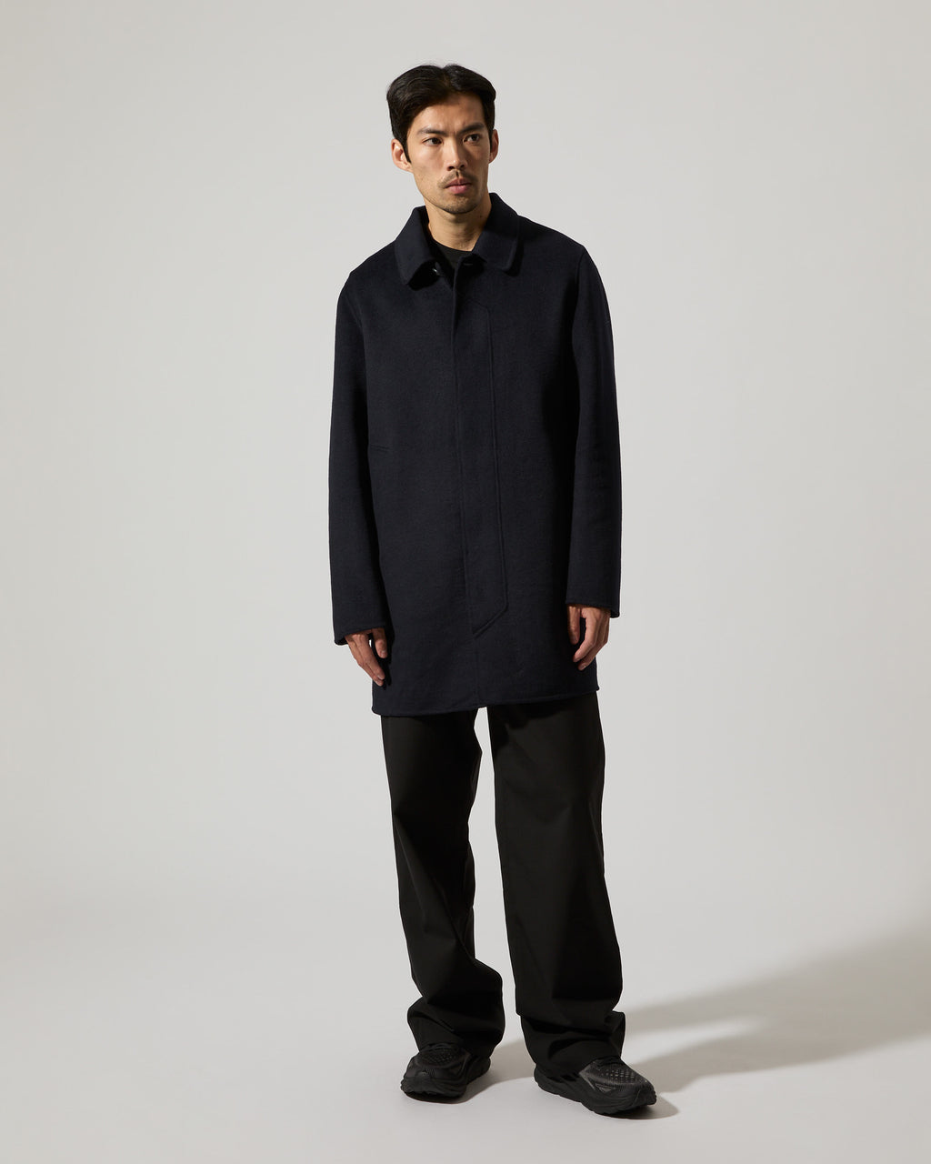 Crafted in a recycled wool blend, certified by the Global Recycle Standard, with a slight brushed finish soft to the touch. T-Coat Wool is a car coat cut at mid-length with a classic silhouette and a regular collar. Featured with simple detailing which creates a clean and minimalistic look. Concealed buttons at front closure, except top button.